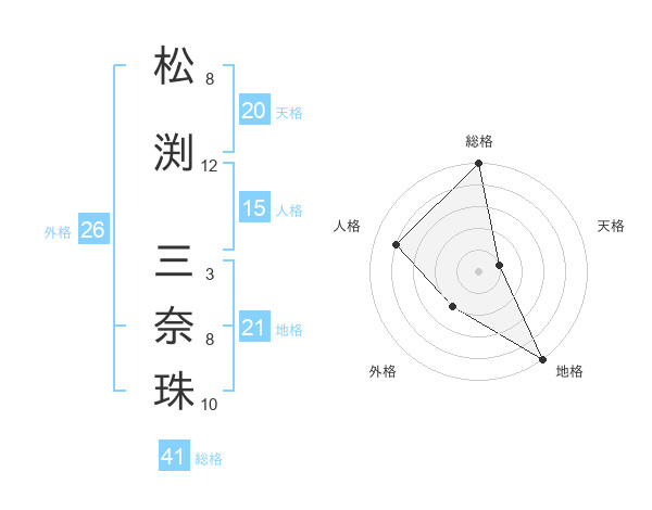 松渕 三奈珠さんの天格は20画の1点!