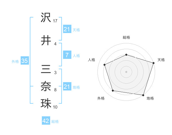 沢井 三奈珠さんを姓名の画数から五運を鑑定