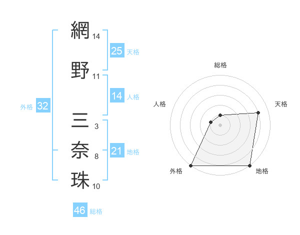 網野 三奈珠さんを姓名の画数から五運を鑑定