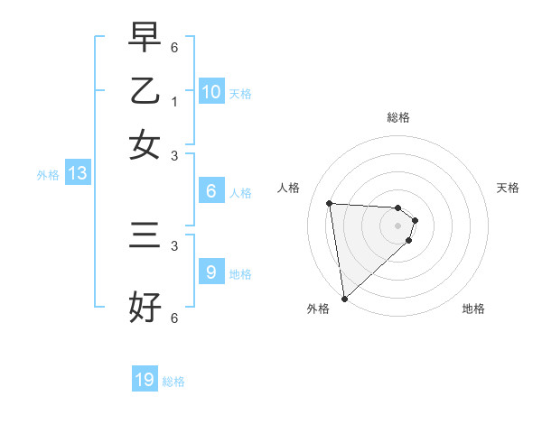 早乙女 三好さんの外格は13画の5点!