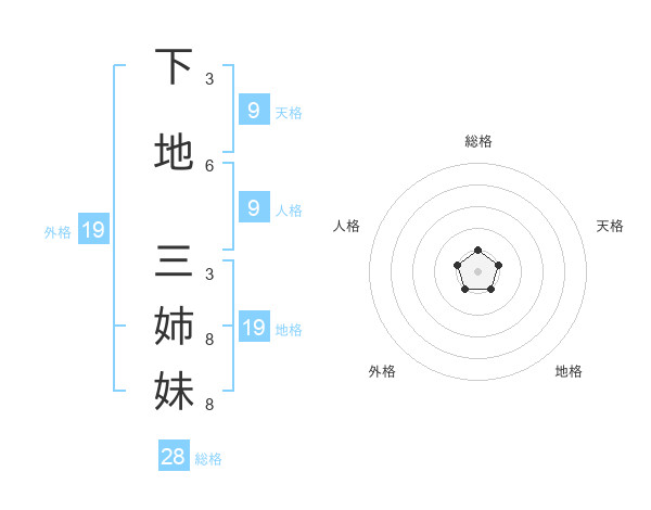 下地 三姉妹さんの総格は28画の1点!