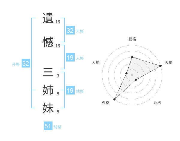 遺憾 三姉妹さんの総格は51画の3点!