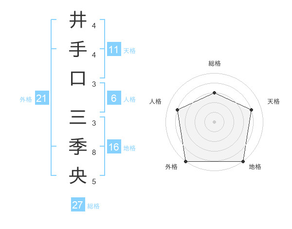 井手口 三季央さんを姓名の画数から五運を鑑定