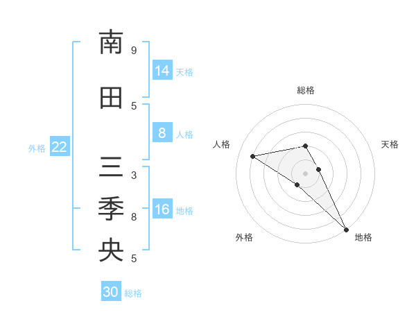 南田 三季央さんの総格は30画の2点!