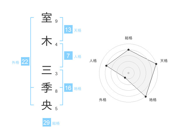 室木 三季央さんの総格は29画の4点!