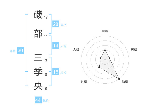 磯部 三季央さんを姓名の画数から五運を鑑定
