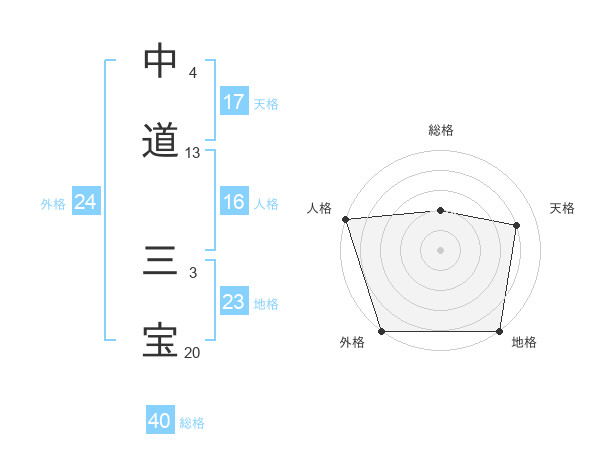 中道 三宝さんの外格は24画の5点!