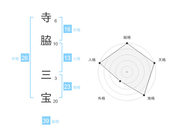 寺脇 三宝さんを姓名の画数から五運を鑑定