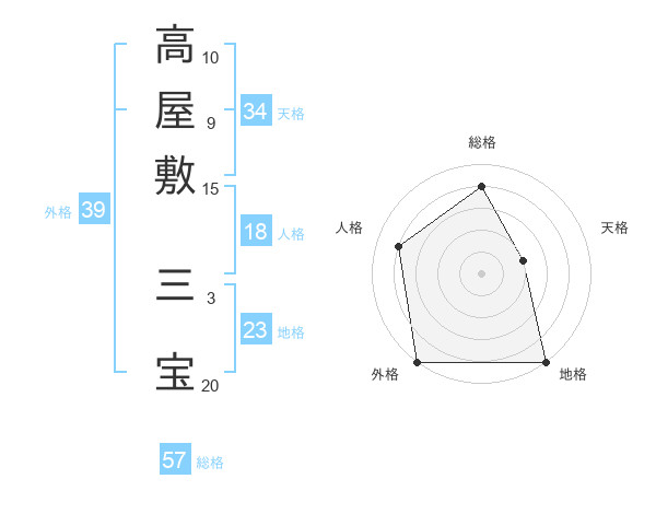 高屋敷 三宝さんを姓名の画数から五運を鑑定