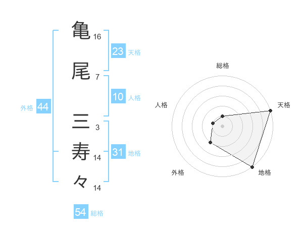 亀尾 三寿々さんの総格は54画の1点!