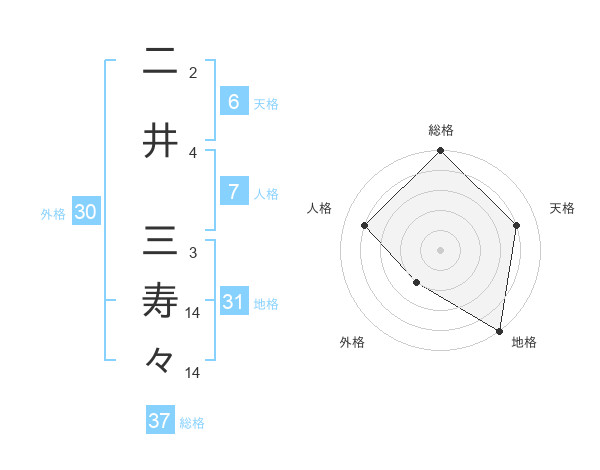 二井 三寿々さんを姓名の画数から五運を鑑定