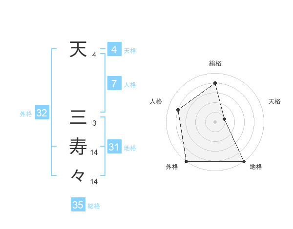 天 三寿々さんの総格は35画の4点!