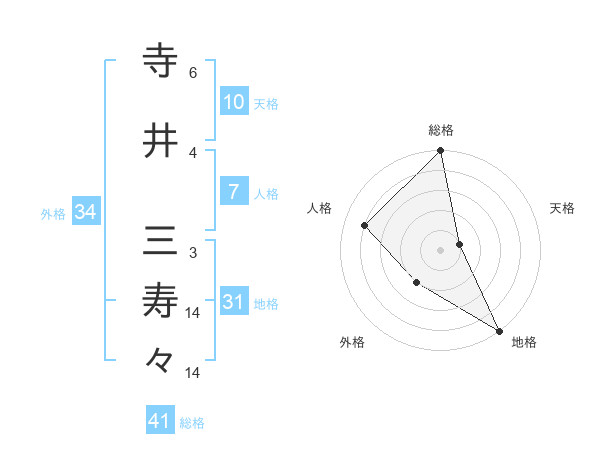 寺井 三寿々さんの総格は41画の5点!