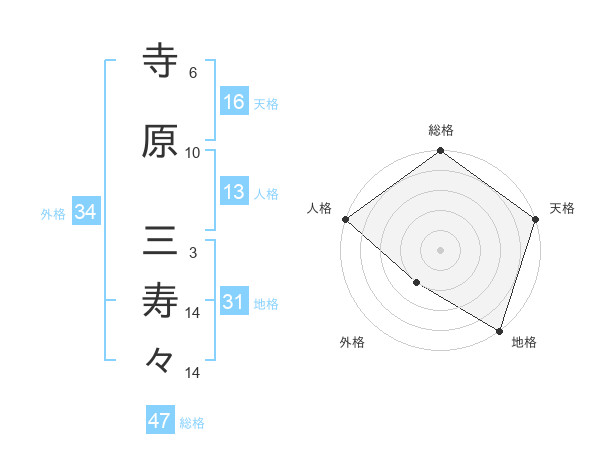 寺原 三寿々さんの総格は47画の5点!
