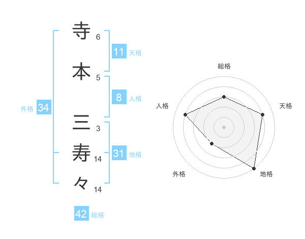寺本 三寿々さんを姓名の画数から五運を鑑定