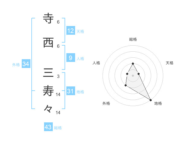 寺西 三寿々さんを姓名の画数から五運を鑑定