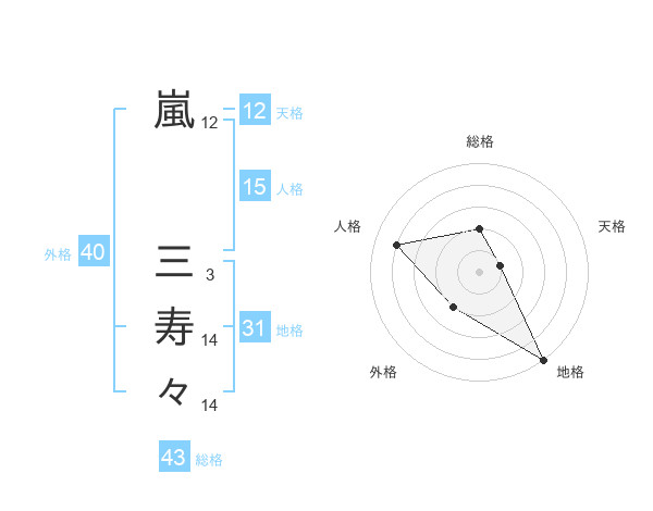 嵐 三寿々さんを姓名の画数から五運を鑑定