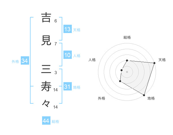 吉見 三寿々さんを姓名の画数から五運を鑑定