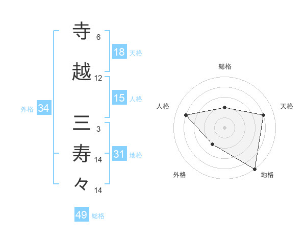 寺越 三寿々さんの総格は49画の2点!