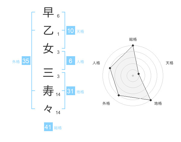 早乙女 三寿々さんを姓名の画数から五運を鑑定