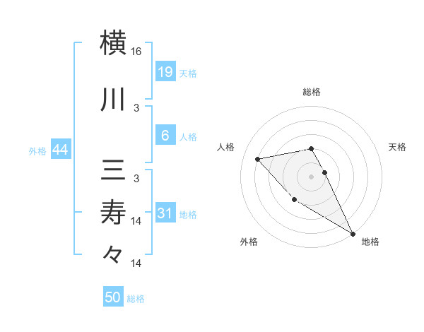 横川 三寿々さんを姓名の画数から五運を鑑定