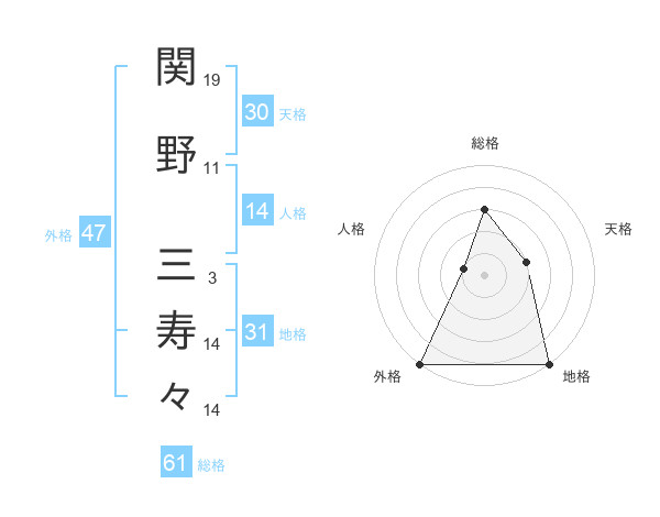 関野 三寿々さんを姓名の画数から五運を鑑定