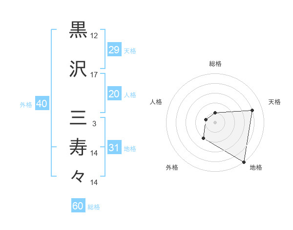 黒沢 三寿々さんを姓名の画数から五運を鑑定