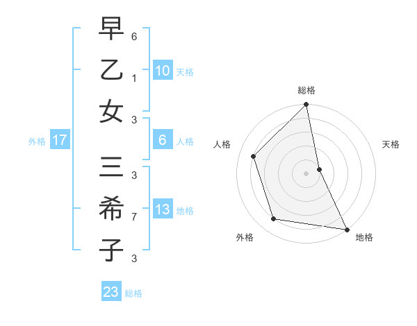 早乙女 三希子さんを姓名の画数から五運を鑑定