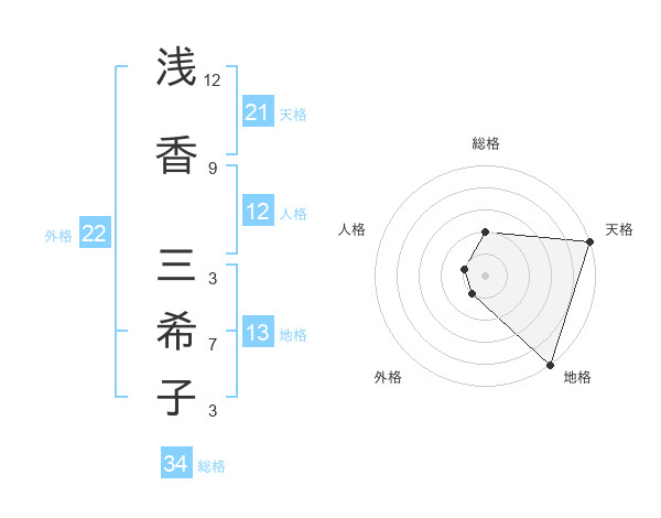 浅香 三希子さんを姓名の画数から五運を鑑定