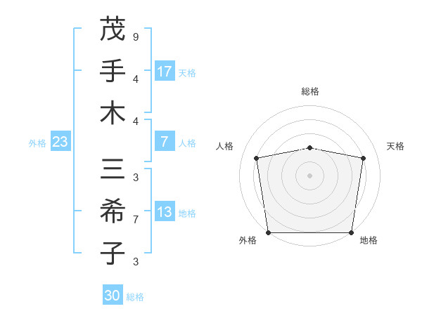 茂手木 三希子さんを姓名の画数から五運を鑑定