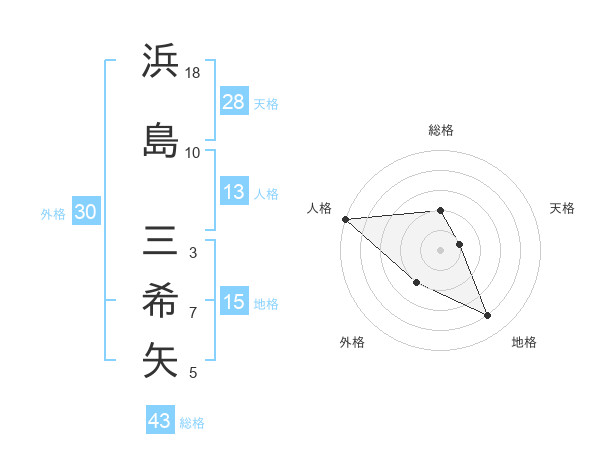 浜島 三希矢さんの総格は43画の2点