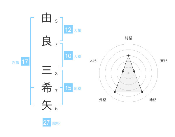 由良 三希矢さんを姓名の画数から五運を鑑定