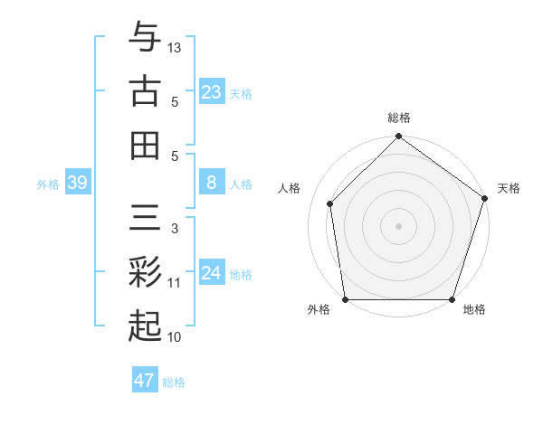 与古田 三彩起さんの総格は47画の5点!