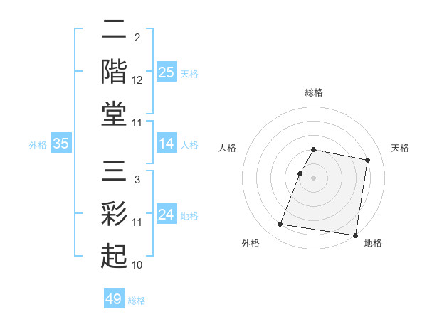 二階堂 三彩起さんを姓名の画数から五運を鑑定