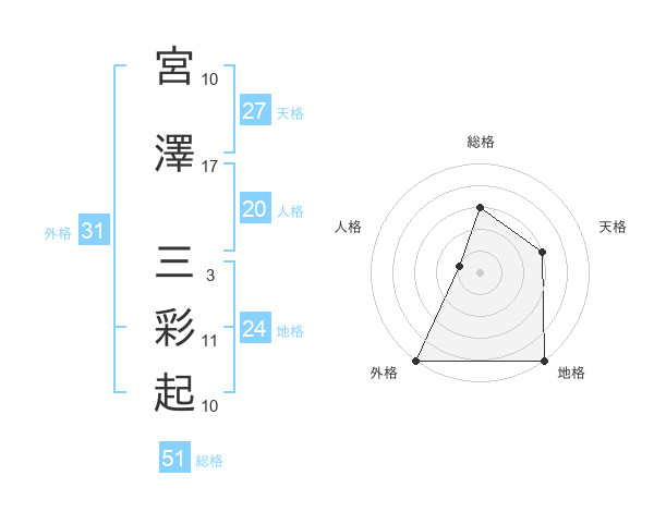 宮澤 三彩起さんの外格は31画の5点!