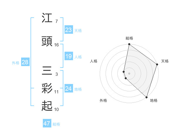 江頭 三彩起さんを姓名の画数から五運を鑑定