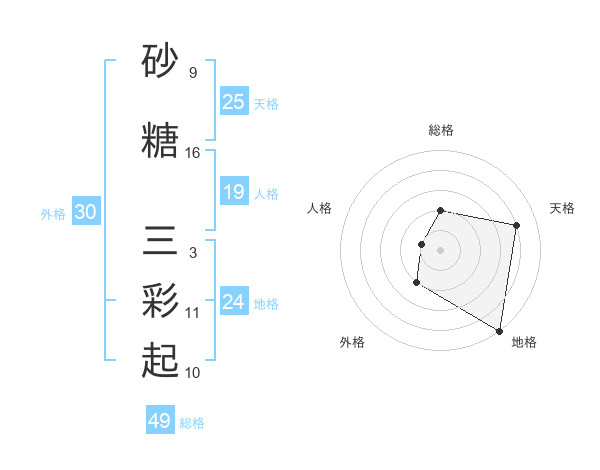 砂糖 三彩起さんを姓名の画数から五運を鑑定