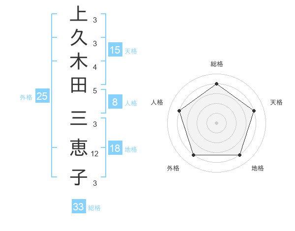 上久木田 三恵子さんの総格は33画の4点!