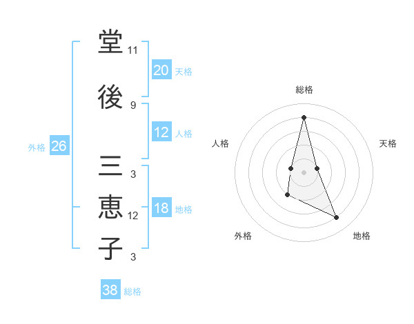堂後 三恵子さんを姓名の画数から五運を鑑定