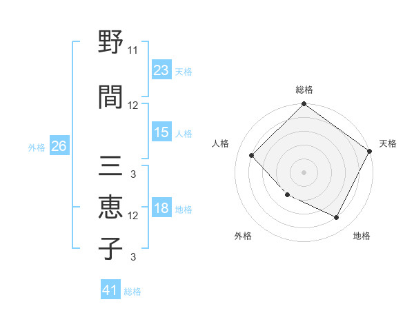 野間 三恵子さんの外格は26画の2点!
