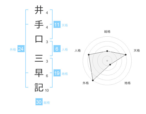 井手口 三早記さんを姓名の画数から五運を鑑定