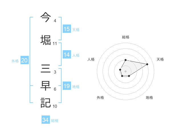 今堀 三早記さんを姓名の画数から五運を鑑定