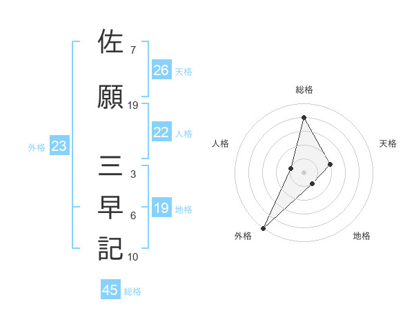 佐願 三早記さんを姓名の画数から五運を鑑定