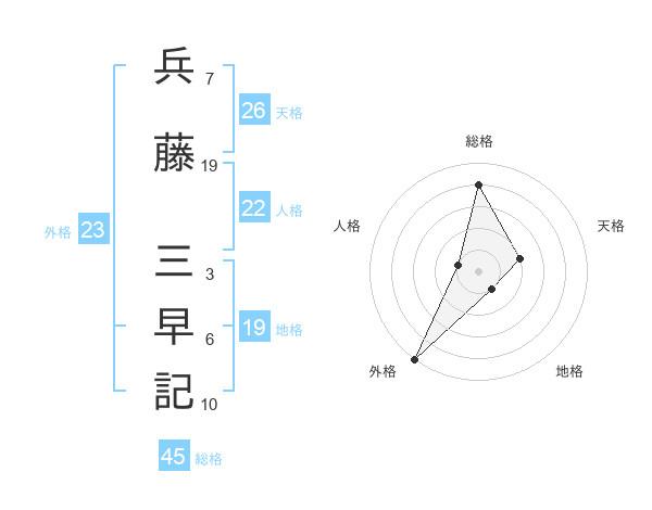 兵藤 三早記さんを姓名の画数から五運を鑑定