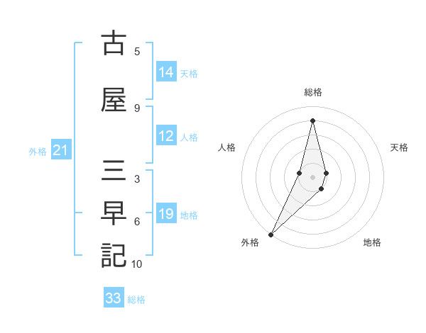 古屋 三早記さんを姓名の画数から五運を鑑定