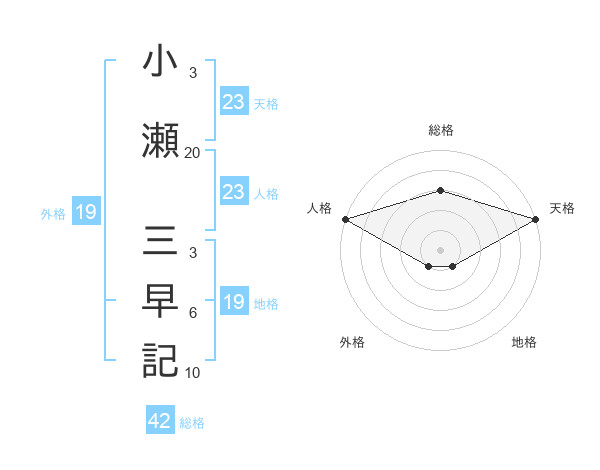 小瀬 三早記さんの天格は23画の5点!