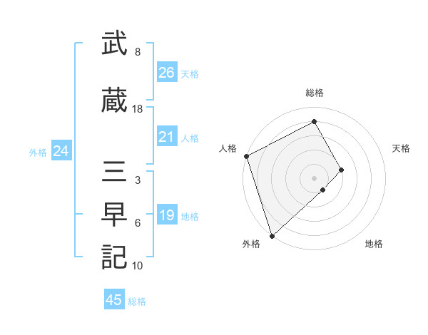 武蔵 三早記さんを姓名の画数から五運を鑑定