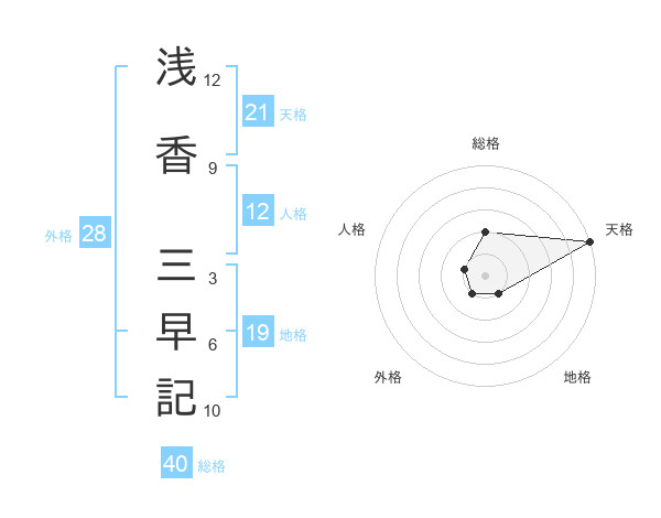 浅香 三早記さんを姓名の画数から五運を鑑定