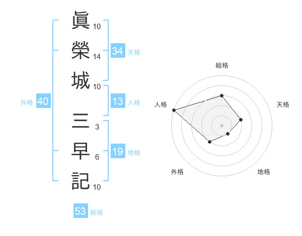 眞榮城 三早記さんを姓名の画数から五運を鑑定