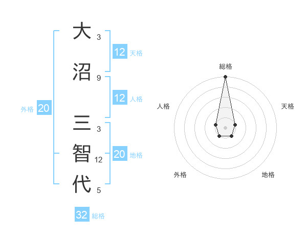 大沼 三智代さんを姓名の画数から五運を鑑定